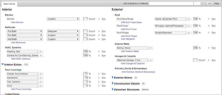 Note: Wings (sections) display on the Building Information page since all foundation materials are included on that page.